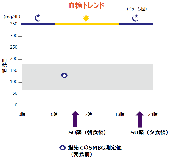 personaSMBGで⾎糖測定をしている、SU薬を含む経⼝薬で治療中の2型糖尿病の⼥性