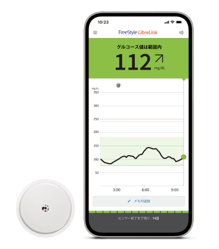 - FreeStyleリブレ2は、選択式アラート機能を備え、1分毎に測定されたグルコース値がリアルタイムに表⽰され、低⾎糖/⾼⾎糖の検出を補助し、より良いアウトカムの実現をサポートします。